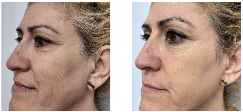 5 F-Exosomes kezelés után (mikrotűvel kombinálva) 50%-kal csökkent a ráncok megjelenése az arcon.