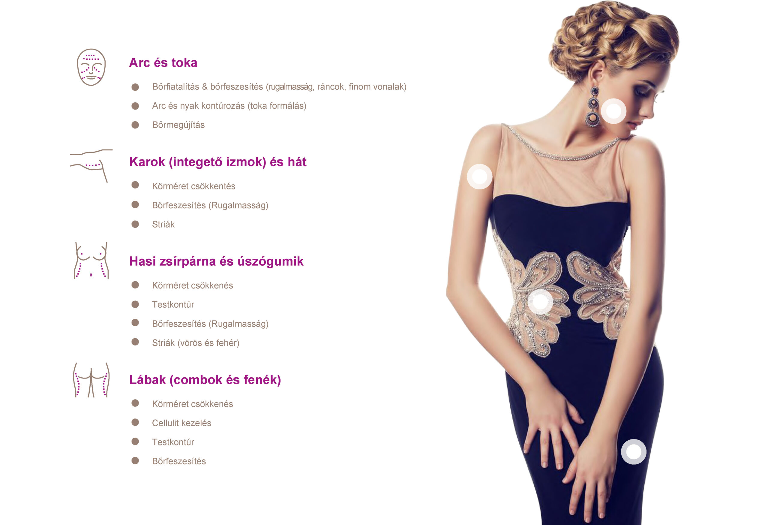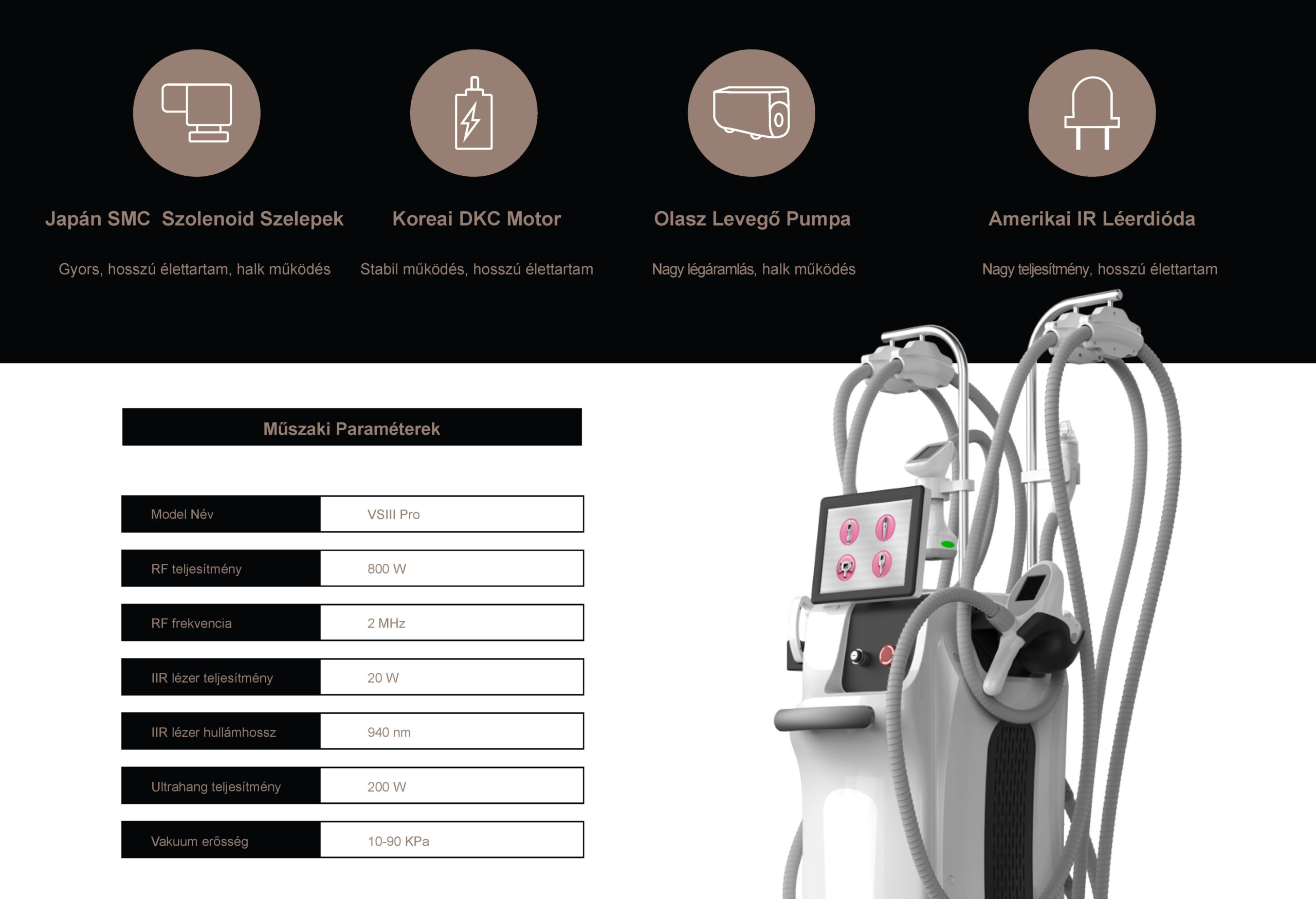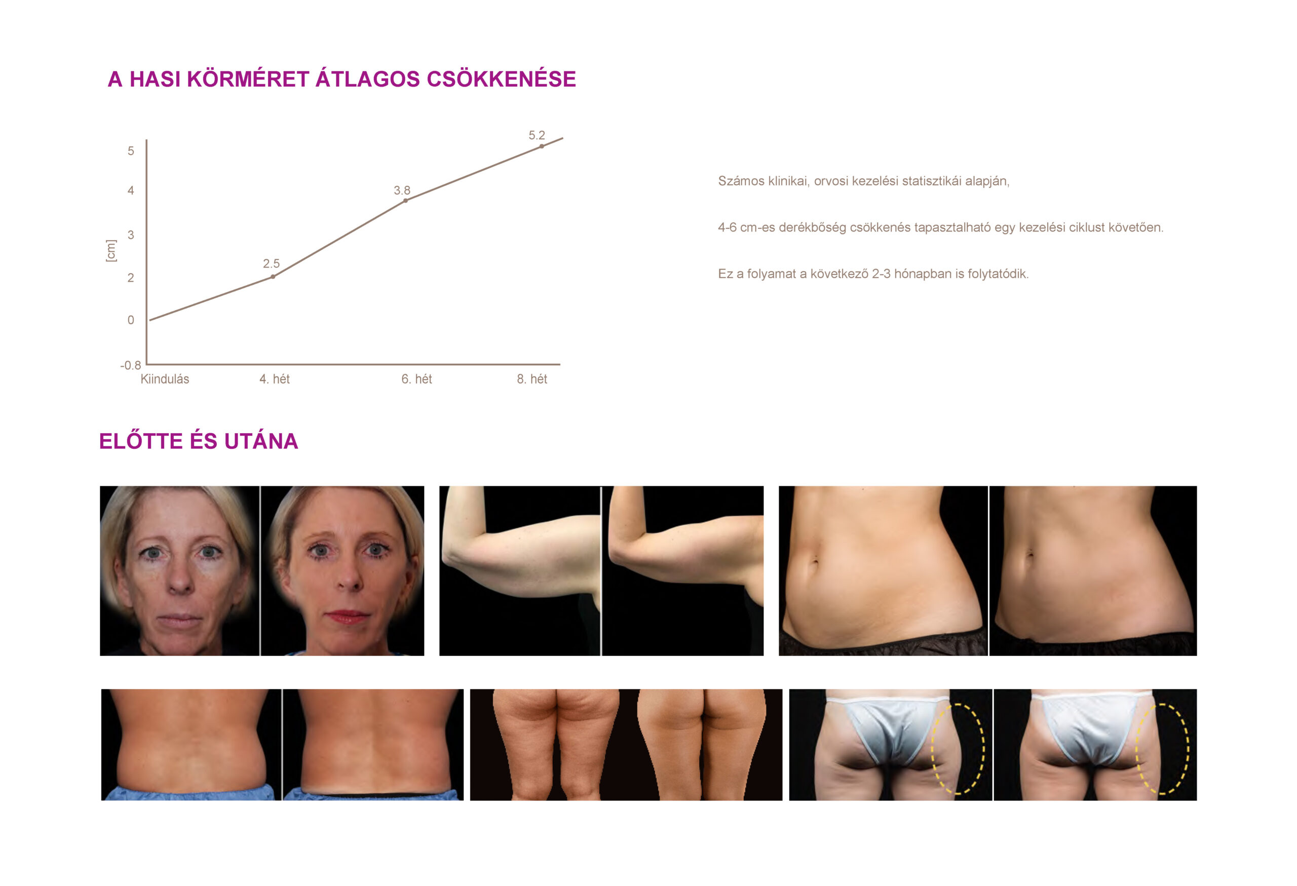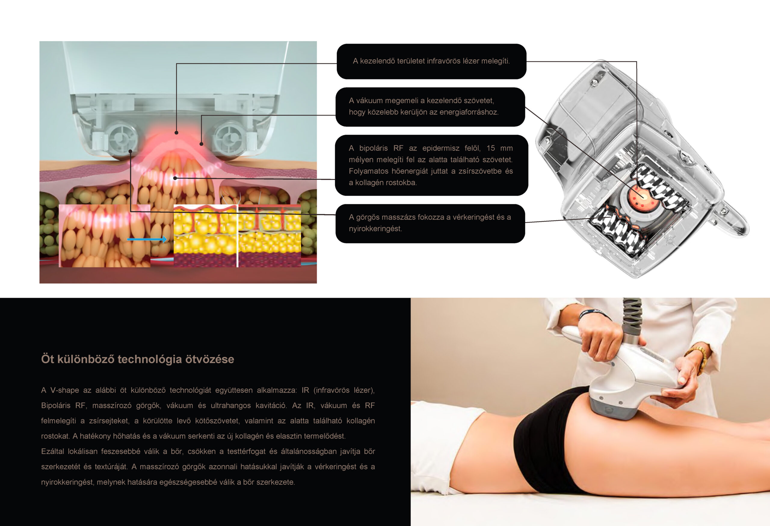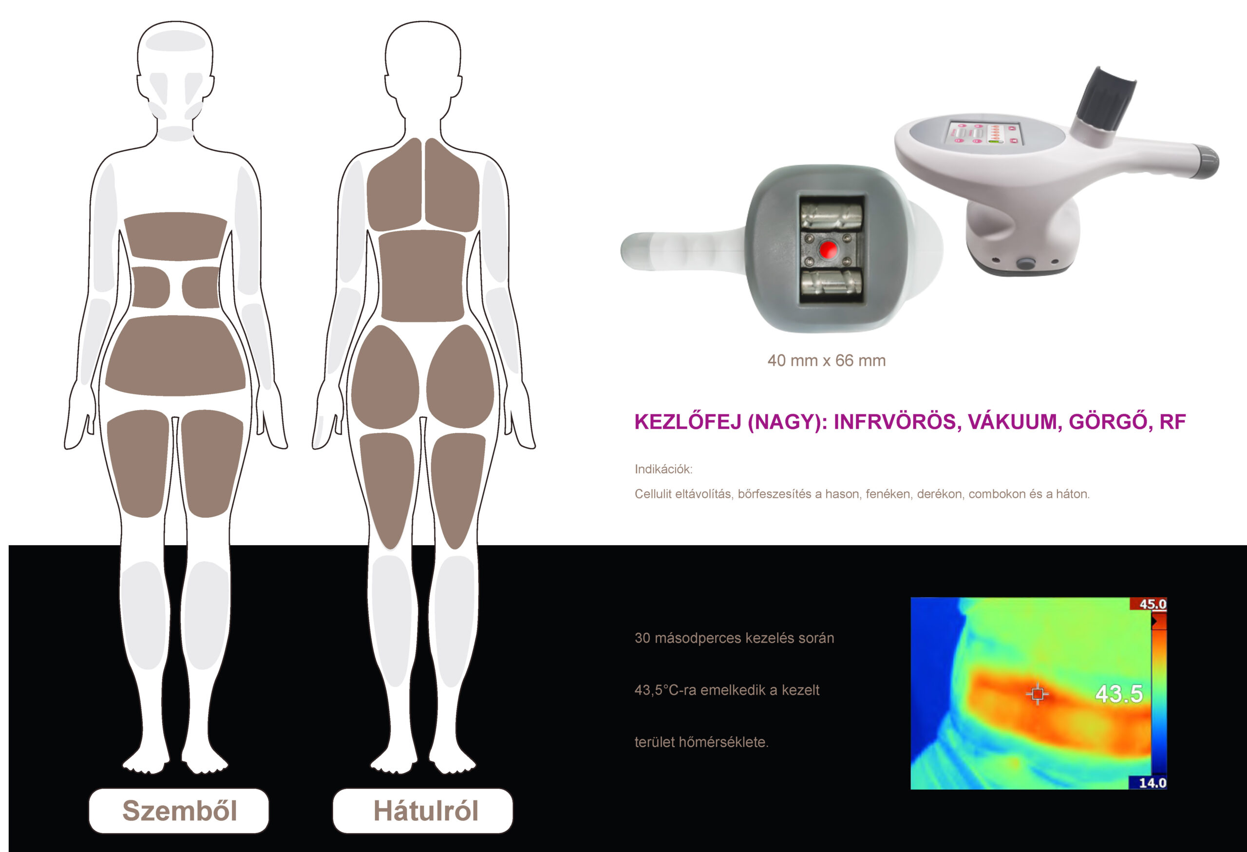 Az IR, vákuum és RF felmelegíti a zsírsejteket, a körülötte levő kötőszövetet, valamint az alatta található kollagén rostokat. A hatékony hőhatás és a vákuum serkenti az új kollagén és elasztin termelődést.